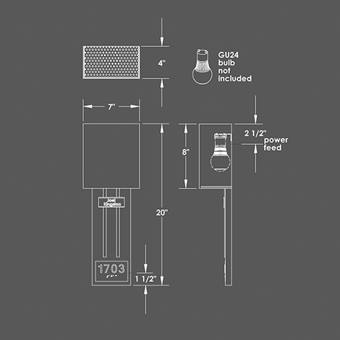 - Lamping GU24 socket for 120v or 277v LED bulb, 10w. recommended (not included)