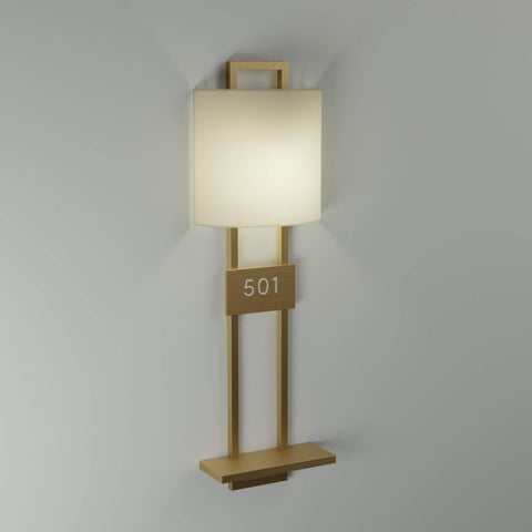 $280 LIST PRICE, for 100+ quantityShown in Medium Bronze finish, and off-white medium weight linen shade and opal acrylic numbers. Signage with Braille will be custom-made for your project.