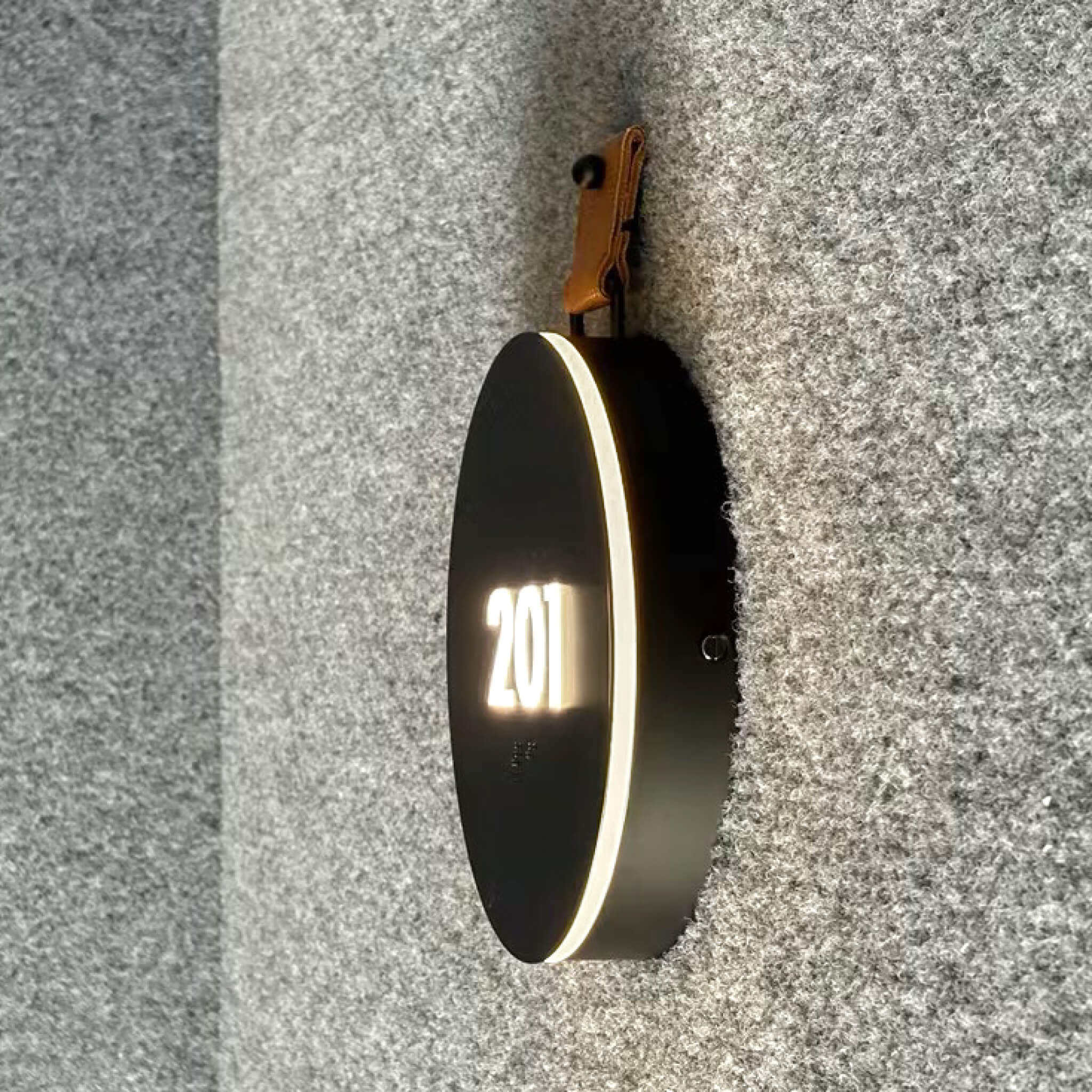 $200 LIST PRICE, for 100+ quantityShown in Dark Oxide (black) painted finish, with backlit opal acrylic and faux leather strap. ADA-compliant signage (including Braille) is included, customized for your project.