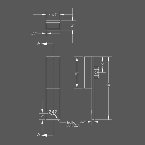 Dimensions 4.5” wide x 20” tall x 3” extension