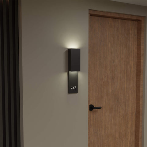 $218 LIST PRICE, for 100+ quantityShown in Dark Oxide finish, with opal acrylic diffusers at top and bottom. ADA-compliant signage is included, customized for your project.