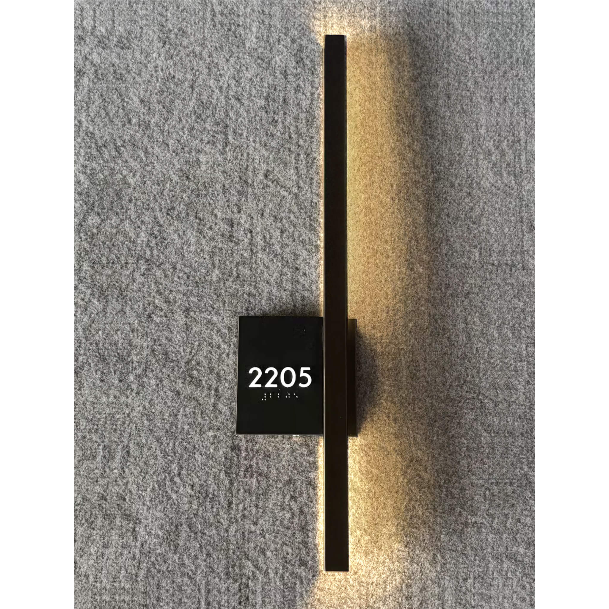 $170 LIST PRICE, for 100+ quantityShown in Dark Oxide (black) painted finish with backlit opal acrylic numbers. Emitters point to the wall, and are shielded to prevent side glare when walking down the corridor. This ADA-compliant fixture comes with custom numbers and Braille installed. Other finishes and fonts are available.