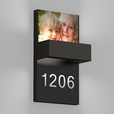 $350 LIST PRICE, for 100+ quantityShown in Dark Bronze finish, with holder for your 4” x 6” photo or card. ADA-compliant signage (including Braille) customized for your project.