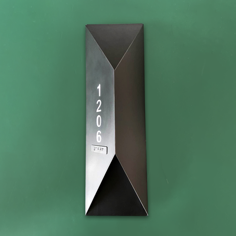 $240 LIST PRICE, for 100+ quantityShown in Dark Oxide finish, with back-lit numbers. ADA-compliant signage is included (with Braille) customized for your project.