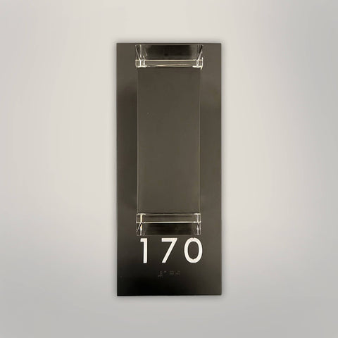 Shown in Dark Oxide finish, with ADA-compliant digits and Braille customized for your project.
